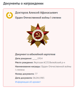 Алексей Афанасьевич хос сиэнэ Аргунов Байдам 2020 сыллаахха төрүччүтүн ырытан дакылаат суруйбутуттан быһа тардан хос эһэтин туһунан ааҕыҥ: "Хос эһэм Докторов Алексей Афанасьевич Үөһээ Бүлүү Ороһутуттан төрүттээх эбит. Хос эһэм Бүлүүгэ сылгыһытынан үлэлии сылдьан, Орто Бүлүүгэ кэлэ сылдьан, эбэбитин көрөн сөбүлээн, кэргэн ылбыт. Ол иһин Тааһаҕарга олохсуйбуттар, уон икки оҕону ииппиттэр. Хос эһээбит сэрии бэтэрээнэ.